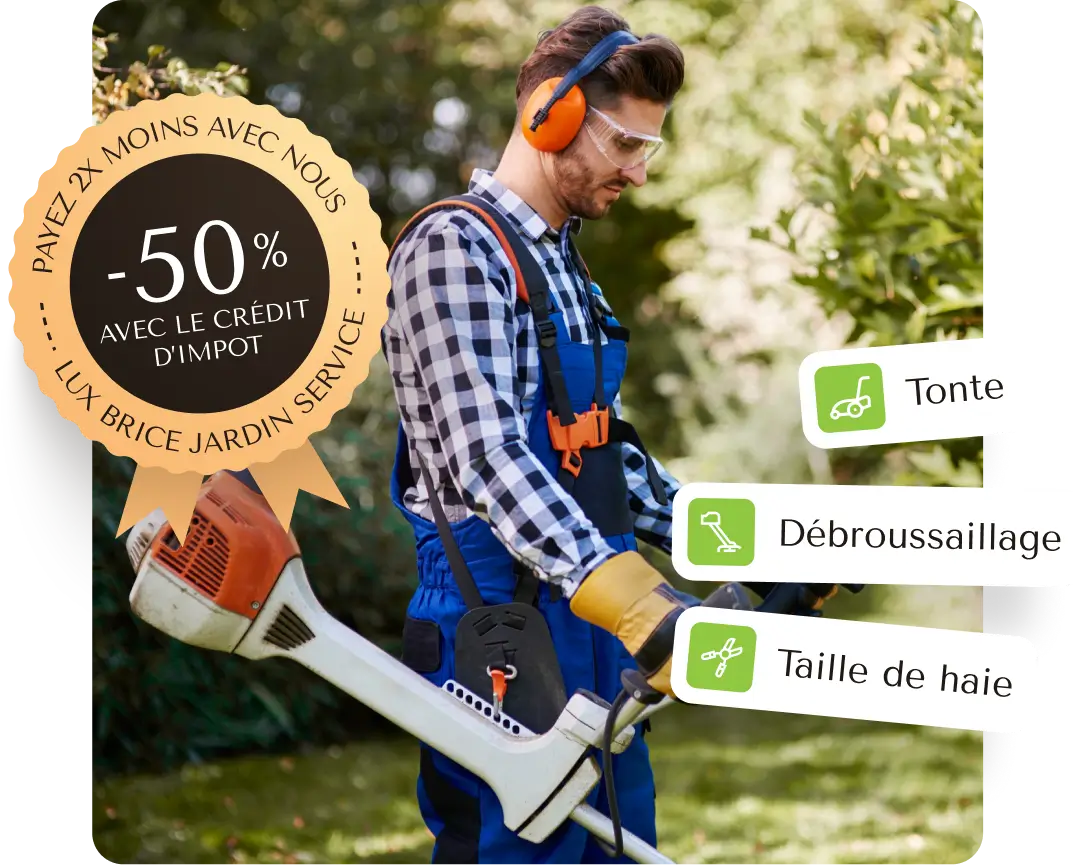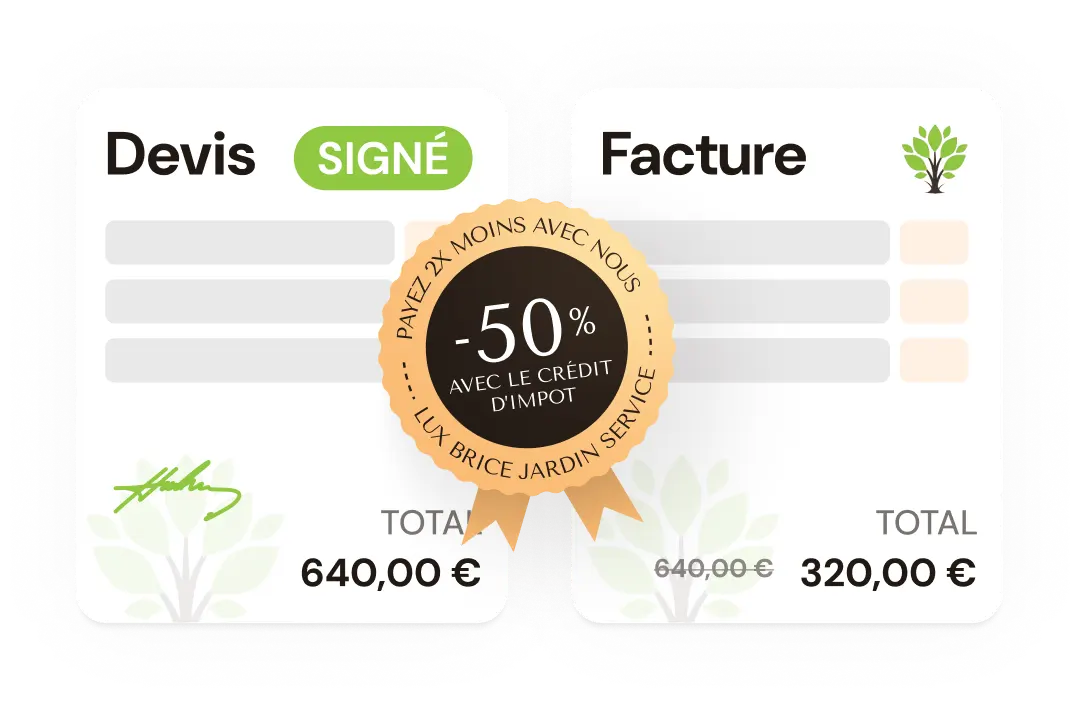 Mes prestations ouvrent droit à un crédit d’impôt de 50 % pour entretenir votre jardin à moindre coût.